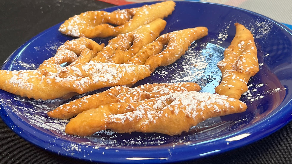 Beat egg yolks well. Add sugar and mix well. Add remaining ingredients, adding the flour a little at a time, just enough to make a soft dough. Keep dough light and fluffy. Handle as little as possible. Form flat discs about 6 inches across and 1 inch thick. Wrap each disk in cling wrap, stack on top of each other and store in the refrigerator. Refrigerate for several hours, or a couple of days. Roll out dough on floured pastry mat to 1/4” thickness. Cut into 1 1/2 strips with fattigmann cutter or pastry wheel, and then cut across the strips diagonally, forming 2- to 3-inch diamonds. Cut a 1-inch slit into the center of each of the diamonds. Pick up each diamond and fold one end of the diamond dough through the center of the slit.